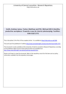 Smith, Andrew James, Tucker, Matthew and Pitt, Michael (2011) Healthy, productive workplaces: Towards a case for interior plantscaping. Facilities, 29 (5/6). pp. 209-223. ISSN 0263-2772
