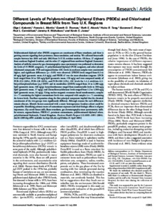 Different levels of polybrominated diphenyl ethers (PBDEs) and chlorinated compounds in breast milk from two UK regions.