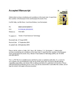 Antimicrobial resistance monitoring and surveillance in the meat chain: A report from five countries in the European Union and European Economic Area.
