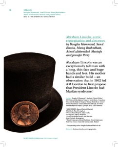 Hammond, Douglas R, Bhatia, Sunil, Brahmbhatt, Manoj, Mustafa, Almoi’zzlideenillah and Perry, Jennifer (2015) Abraham Lincoln, Aortic Regurgitation and Abscesses. Faculty Dental Journal, 6 (1). pp. 28-31.