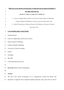 Differences in the kinetics and kinematics of supported and un-supported landings of the rugby union lineout.