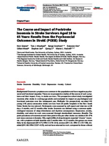 The Course and Impact of Post-Stroke Insomnia in Stroke Survivors aged 18 to 65 years: results from the Psychosocial Outcomes in StrokE (POISE) study.