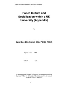 Cox, Carol (2015) Police Culture and Socialisation within a UK University. Doctoral thesis, University of Central Lancashire.