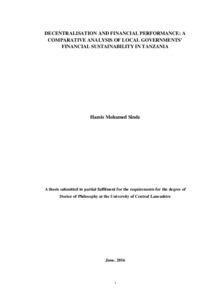 Sinde, Hamis Mohamed (2016) Decentralisation and Financial Peformance: A Comparative Analysis of Local Governments' Financial Sustainability in Tanzania. Doctoral thesis, University of Central Lancashire.