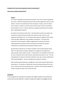 This research investigates the importance of innovation; why we do it and, most significantly, how we do it. Research and teaching practice would inevitably suggest that a lesson must be planned – and this is not something with which we disagree.