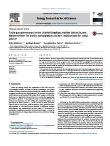 Questions abound about the appropriate governance systems to manage the risks of unconventional oil and gas development, and the ability for citizens to engage and participate in those systems. In this paper, we map the development of shale gas governance in the US and UK; we highlight the contrasting systems of land ownership and mineral rights, compare the opportunities that these systems of governance present the general public to participate and become involved in shale gas decisions and consider the implications on issues of social justice.