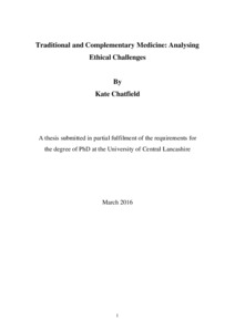 The aim of this thesis is to provide a calm, considered and well researched view on a highly emotional topic: What is the nature of the ethical challenges for the use and practice of TCMs and how might they be addressed?
