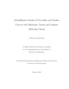 Submillimetre Studies of Pre-stellar and Starless Cores in the Ophiuchus, Taurus and Cepheus Molecular Clouds.
