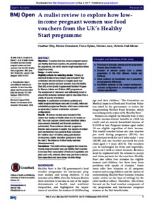 A realist review to explore how low-income pregnant women use food vouchers from the UK’s Healthy Start programme.