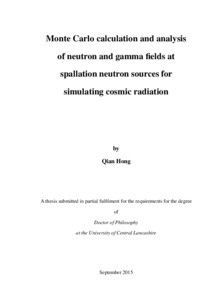 Hong, Qian (2015) Monte Carlo calculation and analysis of neutron and gamma fields at spallation neutron sources for simulating cosmic radiation. Doctoral thesis, University of Central Lancashire.