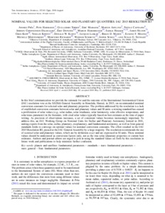 Prsa, A, Harmanec, P, Torres, G, Mamajek, E, Asplund, M, Capitaine, N, Christensen-Dalsgaard, J, Depagne, É, Haberreiter, M et al (2016) NOMINAL VALUES FOR SELECTED SOLAR AND PLANETARY QUANTITIES: IAU 2015 RESOLUTION B3. Astronomical Journal, 152 (2). p. 41. ISSN 1538-3881