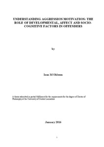 Ohlsson, Ioan Marc (2016) Understanding aggression motivation: the role of developmental, affect and socio-cognitive factors in offenders. Doctoral thesis, University of Central Lancashire.