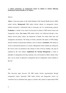 NHS market reforms reliance on management science methods introduced a fundamental shift in measuring care for commissioning.