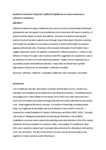 Qualities of reflection: using Saul’s (2001) On Equilibrium to restore humanity to reflection in healthcare.