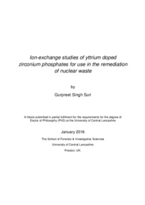 Suri, Gurpreet (2016) Ion-exchange studies of yttrium doped zirconium phosphates for use in the remediation of nuclear waste. Doctoral thesis, University of Central Lancashire.