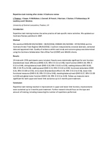 Repetitive task training after stroke: A Cochrane review [Abstract no.116].