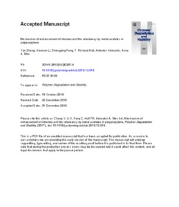 Mechanism of enhancement of intumescent fire retardancy by metal acetates in polypropylene