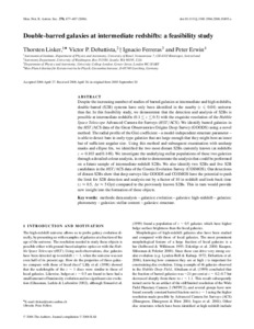 Despite the increasing number of studies of barred galaxies at intermediate and high redshifts, double-barred (S2B) systems have only been identified in the nearby (z � 0.04) universe thus far. In this feasibility study, we demonstrate that the detection and analysis of S2Bs is possible at intermediate redshifts (0.1 ;S z ;S 0.5) with the exquisite resolution of the Hubble Space Telescope Advanced Camera for Surveys (HST/ACS). We identify barred galaxies in the HST/ACS data of the Great Observatories Origins Deep Survey (GOODS) using a novel method. The radial profile of the Gini coefficient – a model-independent structure parameter – is able to detect bars in early-type galaxies that are large enough that they might host an inner bar of sufficient angular size. Using this method and subsequent examination with unsharp masks and ellipse fits, we identified the two most distant S2Bs currently known (at redshifts z = 0.103 and 0.148). We investigate the underlying stellar populations of these two galaxies through a detailed colour analysis, in order to demonstrate the analysis that could be performed on a future sample of intermediate-redshift S2Bs. We also identify two S2Bs and five S2B candidates in the HST/ACS data of the Cosmic Evolution Survey (COSMOS). Our detections of distant S2Bs show that deep surveys like GOODS and COSMOS have the potential to push the limit for S2B detection and analysis out by a factor of 10 in redshift and look-back time (z ≈ 0.5, f'>t ≈ 5 Gyr) compared to the previously known S2Bs. This in turn would provide new insight into the formation of these objects.