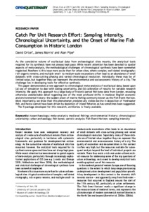 Orton, David, Morris, James and Pipe, Alan (2017) Catch Per Unit Research Effort: Sampling Intensity, Chronological Uncertainty, and the Onset of Marine Fish Consumption in Historic London. Open Quaternary, 3 (1). pp. 1-20. ISSN 2055-298X