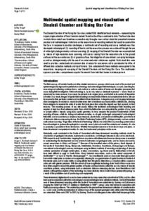 Kruger, Ashley, Randolph-Quinney, Patrick, S. orcid iconORCID: 0000-0003-0694-5868 and Elliott, Marina (2016) Multimodal spatial mapping and visualisation of Dinaledi Chamber and Rising Star Cave. South African Journal of Science, 112 (5/6). ISSN 0038-2353