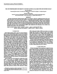 In many nucleated dwarf elliptical galaxies (dE,N’s), the nucleus is offset by a significant fraction of the scale radius with respect to the center of the outer isophotes. Using a high-resolution N-body simulation, we demonstrate that the nucleus can be driven off-center by the m p 1 counterstreaming instability, which is strong in flattened stellar systems with zero rotation. The model develops a nuclear offset on the order of 30% of the exponential scale length. We compare our numerical results with the photometry and kinematics of FCC 046, a Fornax Cluster dE,N with a nucleus offset by 111.2; we find good agreement between the model and FCC 046. We also discuss mechanisms that may cause counterrotation in dE,N’s and conclude that the destruction of box orbits in an initially triaxial galaxy is the most promising.
