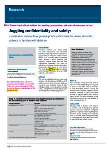Juggling Confidentiality and Safety: a qualitative study of how general practice clinicians document domestic violence in families with children.