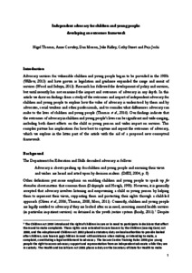 Advocacy services for vulnerable children and young people began to be provided in the 1980s (Willow, 2013) and have grown as legislation and guidance expanded the range and remit of services (Wood and Selwyn, 2013). Research has followed the development of policy and services, but until recently has not examined the impact and outcomes of advocacy in any depth. In this article we draw on findings from a study of the outcomes and impact of independent advocacy for children and young people to explore how the value of advocacy is understood by them and by advocates, social workers and other professionals, and to consider what differences advocacy can make to the lives of children and young people (Thomas et al., 2016). Our findings indicate that the outcomes of advocacy in children and young people’s lives can be significant and wide-ranging, including both direct effects on the child or young person and wider impact on services. This complex picture has implications for how best to capture and report the outcomes of advocacy, which we explore in the latter part of the article with the aid of a proposed new conceptual framework.