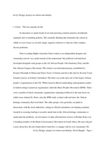 This chapter presents projects developed in local communities with members of minority ethnic communities, primarily of African descent, that examine issue of cultural and political identity. Much of this work questions mainstream practice and understanding in the area of race and identity. All of the work is based in the area of Art & Design, primarily Fashion Design.
