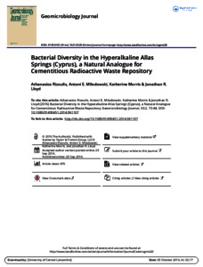 Bacterial Diversity in the Hyperalkaline Allas Springs (Cyprus), a Natural Analogue for Cementitious Radioactive Waste Repository.