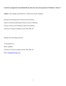 Can better management of periodontal disease delay the onset and progression of Alzheimer’s disease?