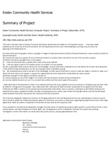Exeter Community Health Services Compter Project Team (1974) Exeter Community Health Services Computer Project: Summary of Project. Project Report. N/A. (Unpublished)