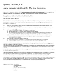Sparrow, J and Fisher, R. H. (1976) Using Computers in the NHS: The long term view. An extrapolation of the ideas conceived and executed by the Exeter Community Health Services Computer Project. Working Paper. UNSPECIFIED. (Unpublished)