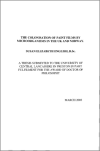 English, Susan E (2002) The colonialisation of paint films by microorganisms in the UK and Norway. Doctoral thesis, University of Central Lancashire.