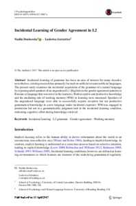 Incidental learning of grammar has been an area of interest for many decades; nevertheless, existing research has primarily focused on artificial or semi-artificial languages. The present study examines the incidental acquisition of the grammar of a natural language by exposing adult speakers of an ungendered L1 (English) to the gender agreement patterns in Russian (a language that was novel to the learners). Both receptive and productive knowledge and the mediating role of working memory (WM) in learning were measured. Speakers of the ungendered language were able to successfully acquire receptive but not productive grammatical knowledge in a new language under incidental exposure. WM was engaged in production but not in a grammaticality judgment task in the incidental learning condition, indicating cognitive effort during knowledge retrieval.