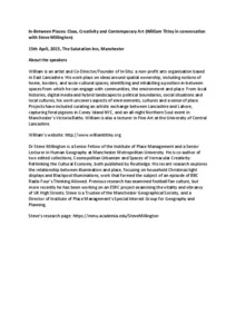 William, Titley and Steve, Millington (2015) Practising Place – In-Between Places: Class, Creativity and Contemporary Art. In: In-Between Places: Class, Creativity and Contemporary Art (William Titley in conversation with Steve Millington), 15 April 2015, The Salutation Inn, Manchester.