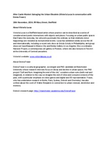 In: After Castle Market: Salvaging the Urban Obsolete (Victoria Lucas in conversation with Emma Fraser), 18 November 2014, 99 Mary Street, Sheffield.
