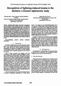 Lightning related deaths can be hard to recognize in most circumstances, unless explicitly looked for, and impossible when the remains are fully skeletonized. There is a crucial need for this for forensic authorities in South Africa, where there is a high incidence of lightning deaths and a high rate of recovery of unidentified bodies in the skeletonized state. The effects of a 15 kA, 8/20 I-Ls impulse current applied to a series of pig femurs was investigated as well as a comparison with a skeletal element from a giraffe struck by lightning. A distinct pattern of traumatization was observed and is described in detail. Further analysis and comparison to human results should be carried out and a method for accurately identifying lightning related fatalities should be created.
