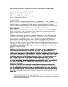 A qualitative study of community pharmacists’ clinical decision-making skills.