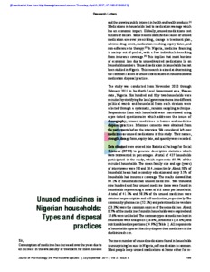 Unused medicines in Nigerian households: Types and disposal practices.