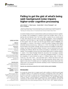 Failing to get the gist of what's being said: background noise impairs higher-order cognitive processing.