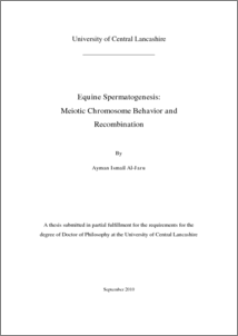 Al-Jaru, Ayman I (2010) Equine Spermatogenesis: Meiotic Chromosome Behavior and Recombination. Doctoral thesis, University of Central Lancashire.
