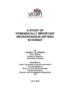 Al-Mesbah, Hanadi AJM (2011) A study of forensically important Necrophgous Diptera in Kuwait. Masters thesis, University of Central Lancashire.