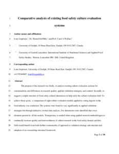 The purpose of the research was firstly, to analyze existing culture evaluation systems for commonalities and differences in research quality, applied validation strategies, and content. Secondly, to suggest a simple structure of food safety cultural dimensions to help unify the culture evaluation field. To achieve these goals, a comparison of eight culture evaluation models applied to varing degrees in the food industry was conducted. The systems were found to vary significantly in applied validation strategies but through deductive, textual data analysis, five dimensions were identified that cover elements present in all the models. Transparency is needed when using applied research methodologies to continually increase quality and trustworthiness of culture research in the food safety domain and this field would benefit from both further commonality of approach to validation strategy and structure and adoption of an overarching structural framework.