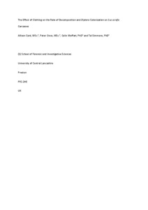 Card, Allison, Cross, Peter, Moffatt, Colin and Simmons, Tal (2015) The Effect of Clothing on the Rate of Decomposition and Diptera Colonization onSus scrofaCarcasses. Journal of Forensic Sciences, 60 (4). pp. 979-982. ISSN 00220-1198