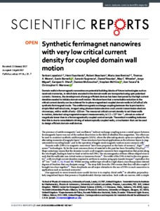 Synthetic ferrimagnet nanowires with very low critical current density for coupled domain wall motion.
