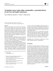 Navigating cancer using online communities: a grounded theory of survivor and family experiences.