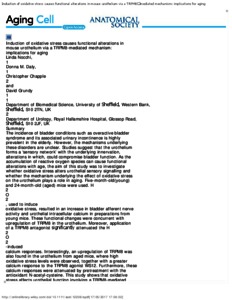 Induction of oxidative stress causes functional alterations in mouse urothelium via a TRPM8-mediated mechanism: implications for aging.