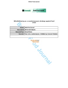 Whistleblowing as a countermeasure strategy against food crime.