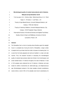 Microbiological quality of cooked meat products sold in Kelantan, Malaysia during Ramadhan month.