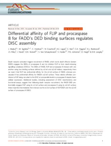 Majkut, J., Sgobba, M., Holohan, C., Crawford, N., Logan, A. E., Kerr, E., Higgins, C. A., Redmond, K. L., Riley, J. S. et al (2014) Differential affinity of FLIP and procaspase 8 for FADD’s DED binding surfaces regulates DISC assembly. Nature Communications, 5 . p. 3350.